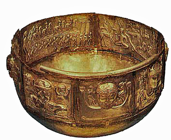 A Sandrine SOMMAIRE : LE ROI ARTHUR - L'Histoire et les légendes arthuriennes - Les Sarmates - Arthur - Merlin - Versions diverses - Importation de la légende en Petite Bretagne - Opéras - Films et séries télévisées LE GRAAL - La quête du Graal - La Table Ronde - Le Vase, le Chaudron, la Coupe, la Lance, la Tête et la Pierre - Pouvoirs et symbolisme du Graal - Les pistes du Graal - Citations L'Histoire et les légendes arthuriennes De 500 à 550, les Celtes de l’Ile de Bretagne parviennent à arrêter les envahisseurs anglo-saxons. C'est ici que se situe l'épisode légendaire du roi Arthur ou Arthus du celtique arzh = ours (qui aurait vécu de 470/475 à 537/542), attestant de la volonté des Bretons à sauver leur culture celtique et leur religion, chrétienne certes, mais plutôt faite d'un amalgame de christianisme et de croyances anciennes rémanentes. Une coalition de tribus celtes de Bretagne vainc les Saxons au mont Badon. La légende dit qu'Arthur est le héros de cette entreprise. Les historiens s'interrogent sur la localisation exacte et la date de cette victoire (493 ? 494 ? 500 ? 516 ?) qui témoigne de la résistance des Bretons chrétiens aux envahisseurs. Saint Gildas (+ en 569 ou 570), retiré sur l’Ile de Houat (Bretagne), écrit en 539 un Sommaire de l’histoire de l'Angleterre depuis la conquête romaine (De excidio et conquestu Britanniae) dans lequel il célèbre la victoire du Mont Badon, et ne mentionne pas Arthur mais Ambrosius Aurelianus. Un grand chef de guerre, Owain Ddantgwyn (Dantguin ou Ddanwyn ou Ddantgwyn qui signifie « Dent blanche »), surnommé L'Ours, mort vers 517, était un roi de Rhos (petit royaume du Pays de Galles) et peut-être également de Gwynedd. En 522, mort de saint Illtud (Illtut, Ildut, Iltut, Elchut, Ideuc) de Llantwit, fêté le 6 novembre. Parent du roi Arthur, il sert dans son armée. Abbé, il fonde, au Pays de Galles, dans le voisinage de Llan-carvan, une école monastique qui prend le nom de Llan-Illut ou Llantwit. Jordanès, historien goth de langue latine du VIe siècle, compose, en 551, son ouvrage intitulé De origine actibusque Getarum dans lequel il fait le récit de la campagne des Gaules d’un certain Riothamus, roi des Brettones (d'après Léon Fleuriot, le nom de Riothamus n'est qu'un terme signifiant grand roi) : s'agit-il d'Arthur ? Selon Geoffrey Ashe, reprenant la thèse de Léon Fleuriot, le légendaire Arthur est inspiré du personnage réel de Riothamus, qui aurait porté le titre de « roi des Bretons » entre 454 et 470. Celui-ci aurait fait campagne en Gaule au cours des années 468 et 469 pour appuyer les Gallo-romains contre les Wisigoths, avant d'être battu par ces derniers à la bataille de Déols. Le gallois Aneirin, qui écrit (v. 593) le poème Gododdin pour commémorer la bataille de Catraeth [Catterick], fait référence à Arthur lorsqu'il dit qu'un certain guerrier, Gwawrddur, était vaillant dans la bataille mais "n'était pas Arthur" [verset 1234]. Adomnan, dans sa Vita Columbae (VIIe siècle), évoque un grand guerrier du nom d'Arturius. En 858, Arthur est mentionné dans Historia Brittonum (Histoire des Bretons) attribuée au moine gallois Nennius. Nennius raconte qu’un chef guerrier (Dux bellorum = Chef de guerre), Arthur, à la tête des tribus celtes de Grande Bretagne (ou plus exactement de la Domnonée, région qui correspond, aux Iles Britanniques, au territoire actuel des Cornouailles, du Devon et du Somerset), aurait remporté une douzaine de batailles dont certaines en Irlande et sur le Continent lorsqu'il résistât à la fois aux légions romaines et à la poussée nordique des Angles et des Saxons : sa plus célèbre bataille étant la douzième, celle du Mont Badon (vers 516) où tombèrent en un seul jour 960 guerriers. Nennius raconte que dans le pays d’Arthur se trouvaient des curiosités remarquables, dont Cain Cabal, une pierre où l’on voyait l’empreinte de la patte de Cabal, le chien d'Arthur, et Licat Anir, le tombeau d'Anir, le fils d'Arthur, tué par son père (les dimensions du tombeau variaient : sa longueur était de 6, de 9, de 12 ou de 15 pieds). En 900, le poème gallois,The Stanzas of The Graves, mentionne Arthur, en disant, "la merveille du monde une tombe pour Arthur", c'est-à-dire qu'il a été enterré dans une tombe non marquée dont le site était inconnu. Le Butin d’Annwn (Preiddeu Annwn) est un poème gallois du Xe siècle mentionnant Arthur ; il relate son voyage accompagné de ses hommes jusqu’à Caer Siddi (Château des fées) pour en rapporter un chaudron magique 5. Les Annales Cambriae (Welsh Annals), enregistrement continu des événements du 5ème siècle au 10ème siècle qui commence en 445 et se termine en l'an 977, relatent une bataille remportée par Arthur en 516/517 (probablement au Mont Badon) au cours de laquelle il aurait porté durant 3 jours et 3 nuits la croix du Christ sur ses épaules et la bataille de Camlan lors de laquelle Arthur et Medraut [Mordred] sont tombés en 537/542. La légende celtique d'Arthur commence surtout à se répandre après la conquête de l'Angleterre par les Normands (1066). Il est fait mention d'Arthur dans : - le Livre Noir de Carmarthen (en gallois : Llyfr Du Caerfyrddin), écrit vers 1250, qui contient essentiellement des poèmes anonymes rédigés entre le IXe et le XIe siècle ; un des poèmes Élégie de Gereint, fils de Erbin, qui pourrait être attribué à Llywarch Hen, fait référence à la bataille de Llongborth, dont la localisation est perdue et mentionne la participation à la bataille du roi Arthur qui y est décrit non comme un roi mais comme empereur et directeur du combat (amherawdyr). - le recueil de contes gallois Mabinogion (v. 1100) où Guenièvre, la femme du roi Arthur et certains de ses chevaliers apparaissent pour la première fois, - dans trois Vies de saints gallois publiées en latin au début du XIIème siècle (celles des saints Cadoc, Paterne et Car